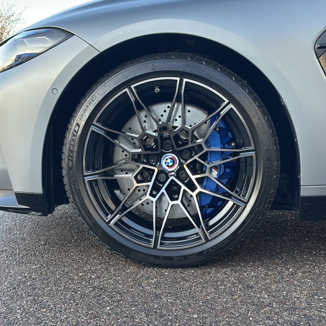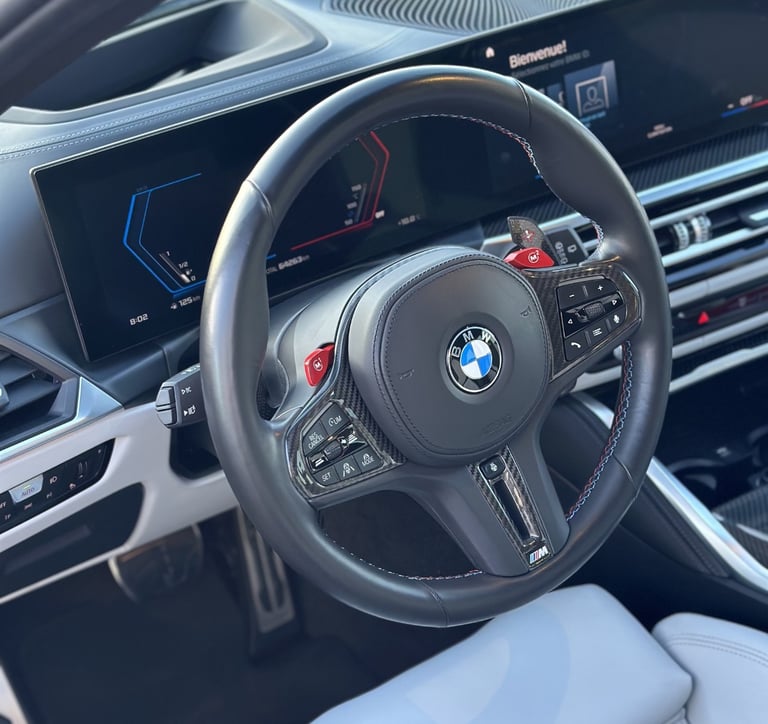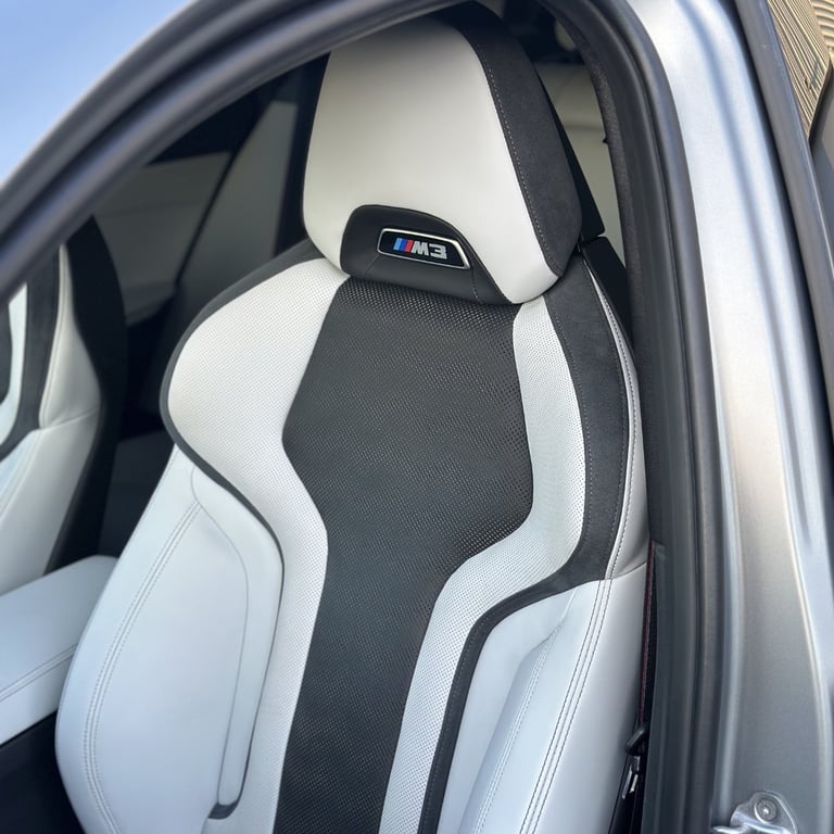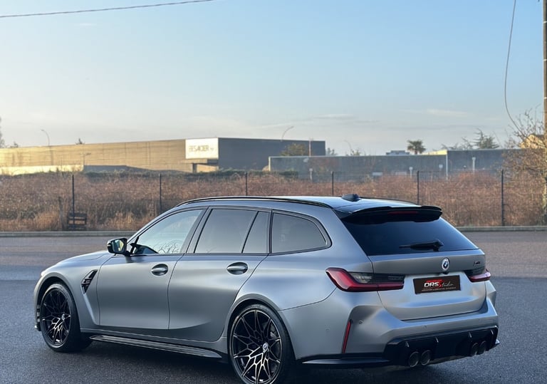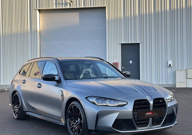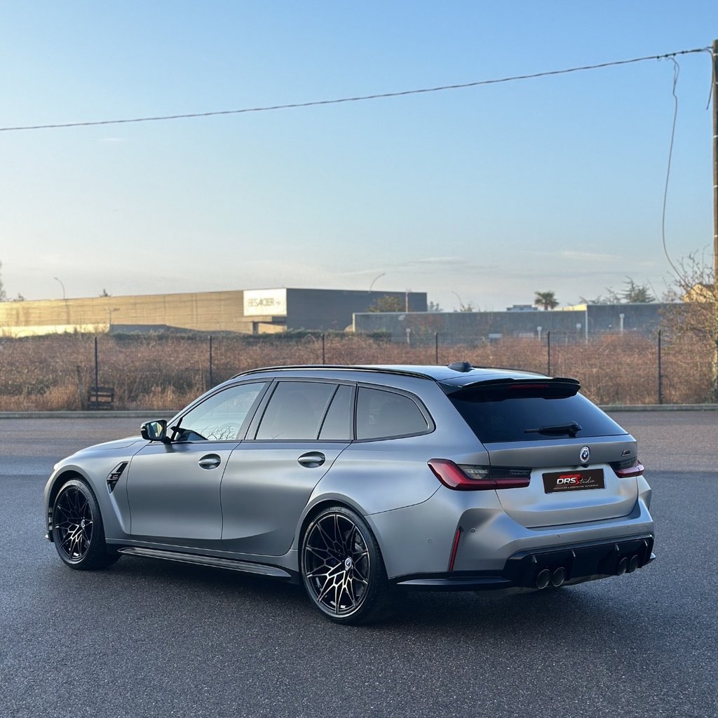 Break ultra sportif au design affirmé, cette BMW M3 Competition Touring (G81) se distingue par sa teinte Frozen Pure Grey II Metallic, une finition mate exigeante nécessitant un soin particulier.
