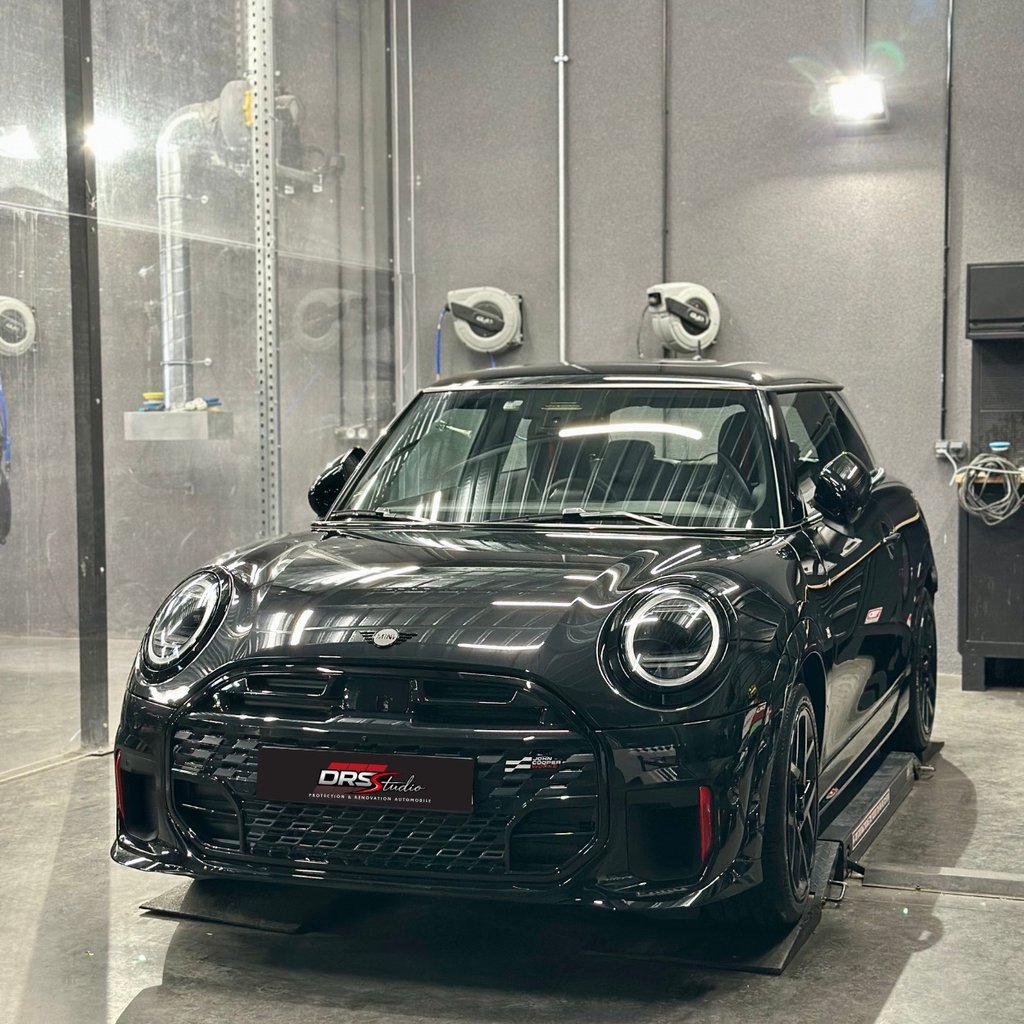 Avec son caractère affirmé et sa finition John Cooper Works, cette Mini Cooper 231 ch incarne parfaitement l’esprit sportif chic de la marque. Sa teinte Midnight Black II, profonde et sophistiquée, mérite une présentation irréprochable pour révéler toute sa richesse sous la lumière.