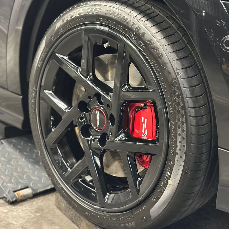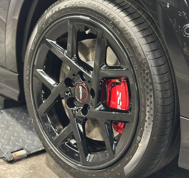 Un polissage en plusieurs passes a permis de corriger une grande partie des défauts du vernis afin de redonner toute sa profondeur à la teinte. Pour préserver durablement ce résultat, une protection céramique carrosserie garantie 5 ans a été appliquée, complétée par une céramique sur les vitres pour améliorer la visibilité sous la pluie et une céramique spécifique sur les jantes afin de limiter l’adhérence des poussières de frein.
